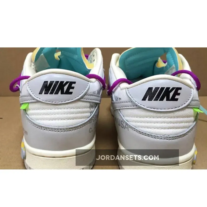 The Off-White x Nike Dunk Low The 50 Collection consists of each pair dressed in the same Sail/Neutral Grey color scheme. The only features that will help differentiate each colorway will be the color of the hiking laces overlay, insoles, tab on the Swoosh, and the number plate reading “XX of 50.” Pair number 50 of 50 pair will come in a Black color blocking which will completely differ from the rest of the pack.
