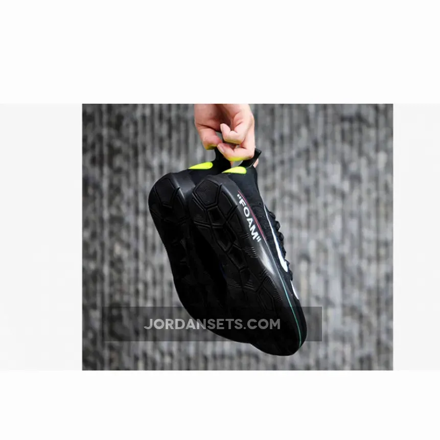Released in June 2018 on the same day the 2018 World Cup kicked off, the Off-White x Zoom Fly Mercurial Flyknit is part of a wider, soccer-inspired collaboration between Nike and Virgil Abloh. Bold “FOAM” lettering appears in white on the Lunarlon midsole.