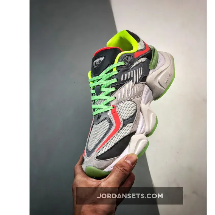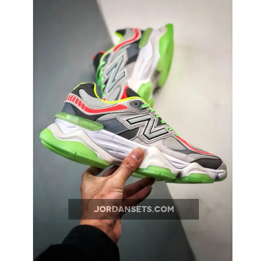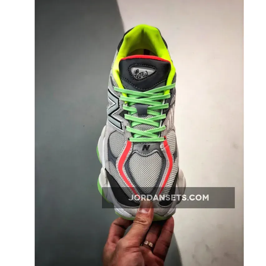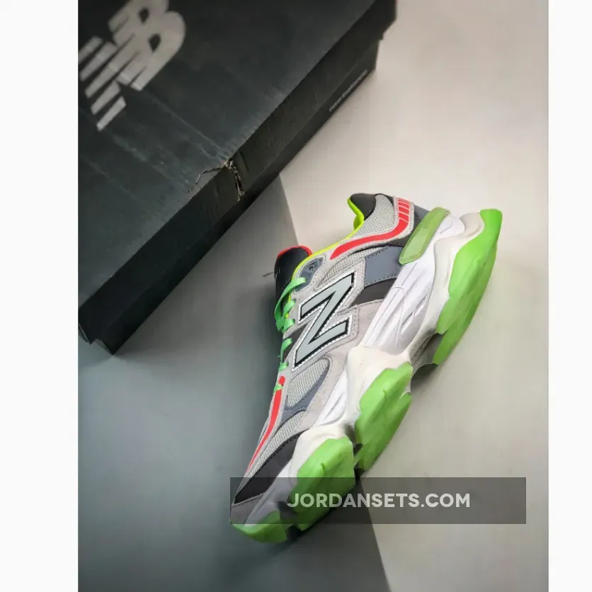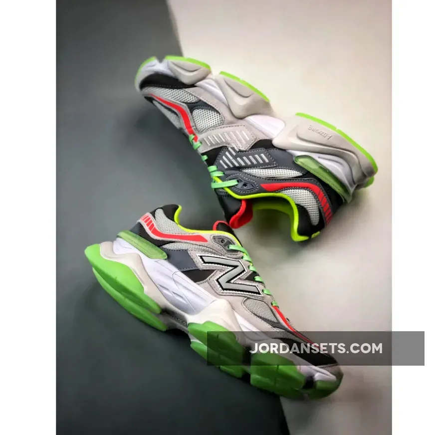 This offering of the New Balance 9060 comes constructed in a mix of mesh, suede, and leather materials. It features different Grey tones covering its upper highlighted with vibrant Green, Volt, and Crimson contrasting accents. Other details includes glow-in-the-dark lateral “N” logos, tongue tabs, and rubber outsole with “NB” embroidered heels. Traditional lacing system atop a dual-density ABZORB and SBS foam midsole completes the design. The shoe will be available in mens and grade school sizing.