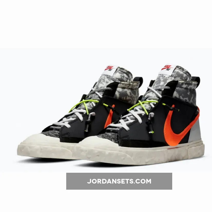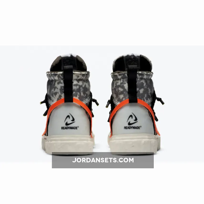 Forget all the crazy coloured sneakers you’ve seen before as we can guarantee that you’ve never seen anything like the READYMADE x Nike Blazer Black Total Orange before. Set to drop alongside another colorway on the 27th of February, this wildly arranged Blazer is the latest offering from the Swoosh brand and Japanese fashion label READYMADE. If the first look at the official images has your attention, then we have no doubts you’ll want to secure your size on drop day after you read all the deets we have for you here at Our Store Supplier. Don’t forget to use our READYMADE x Nike Blazer Black Tonal Orange raffles list too for the best chances of copping on drop day.Crafted with black nylon upper for a stealthy look, grey camouflage patterns grace the collar and tongue giving the silhouette somewhat an odd arrangement already. It even gets crazier with a deformed Nike Swoosh logo in orange across the side panels that is sure to have people’s attention on the streets. White laces then tie everything together joined with additional neon yellow laces forefoot that features duck taped-lace aglets.