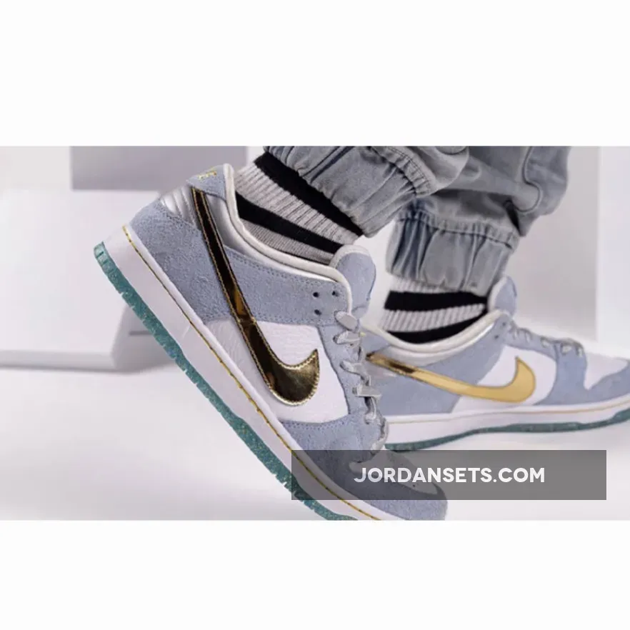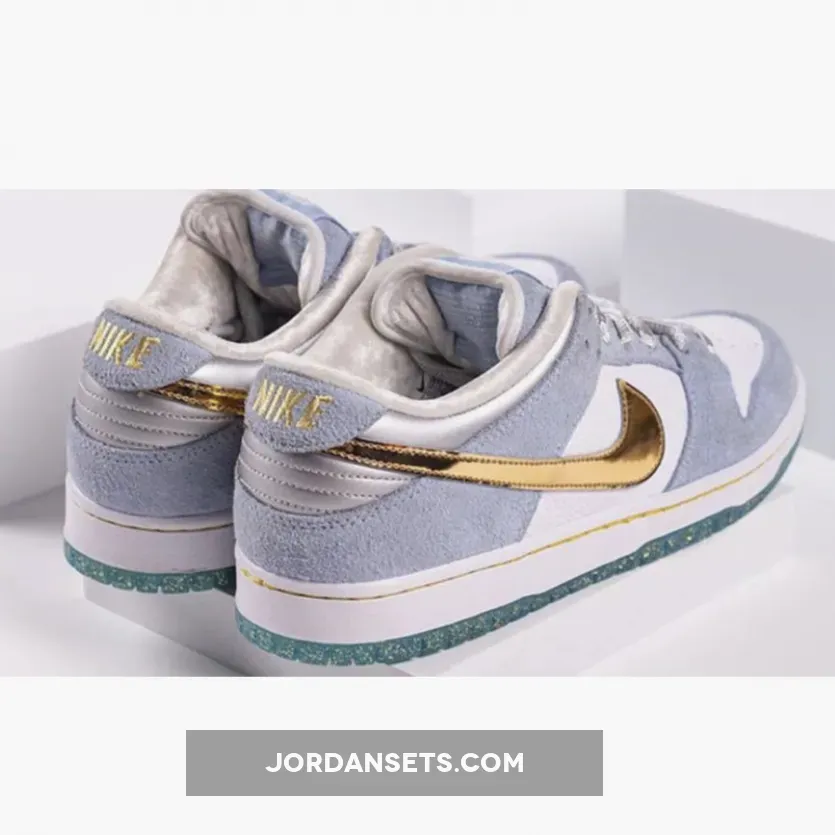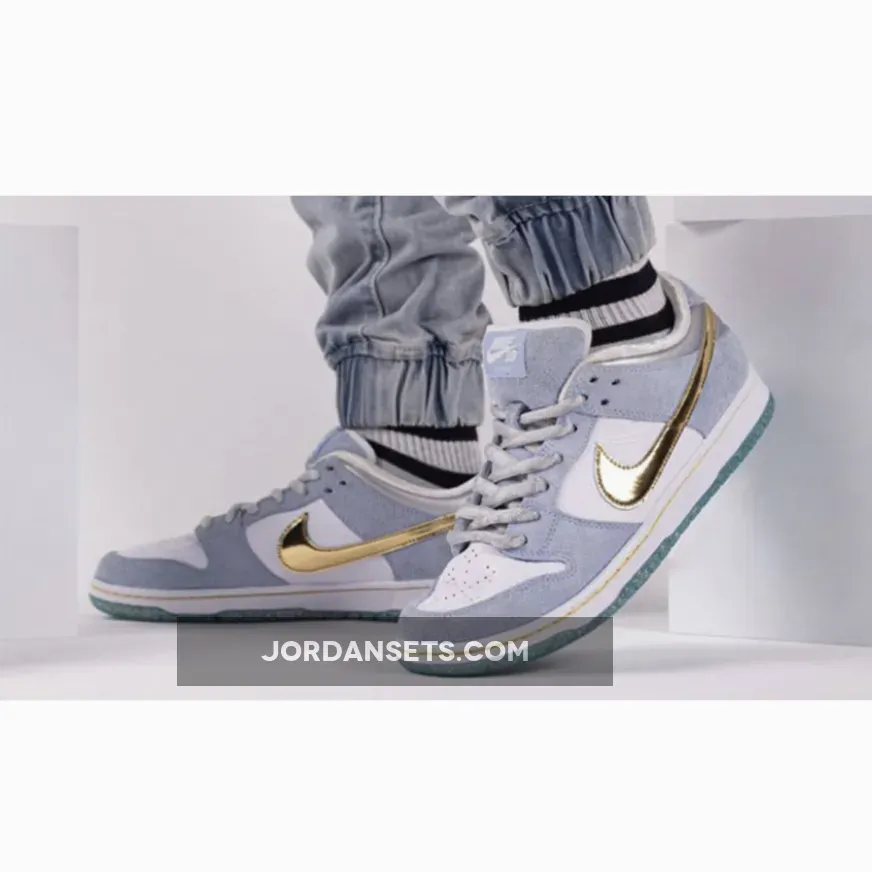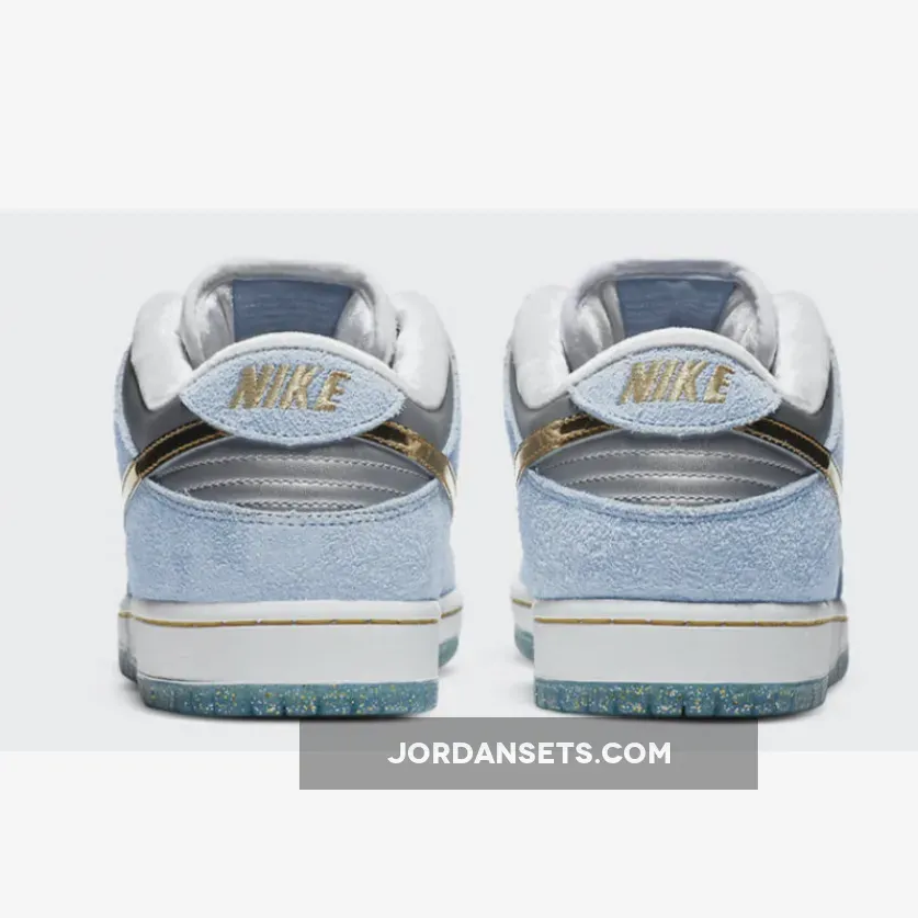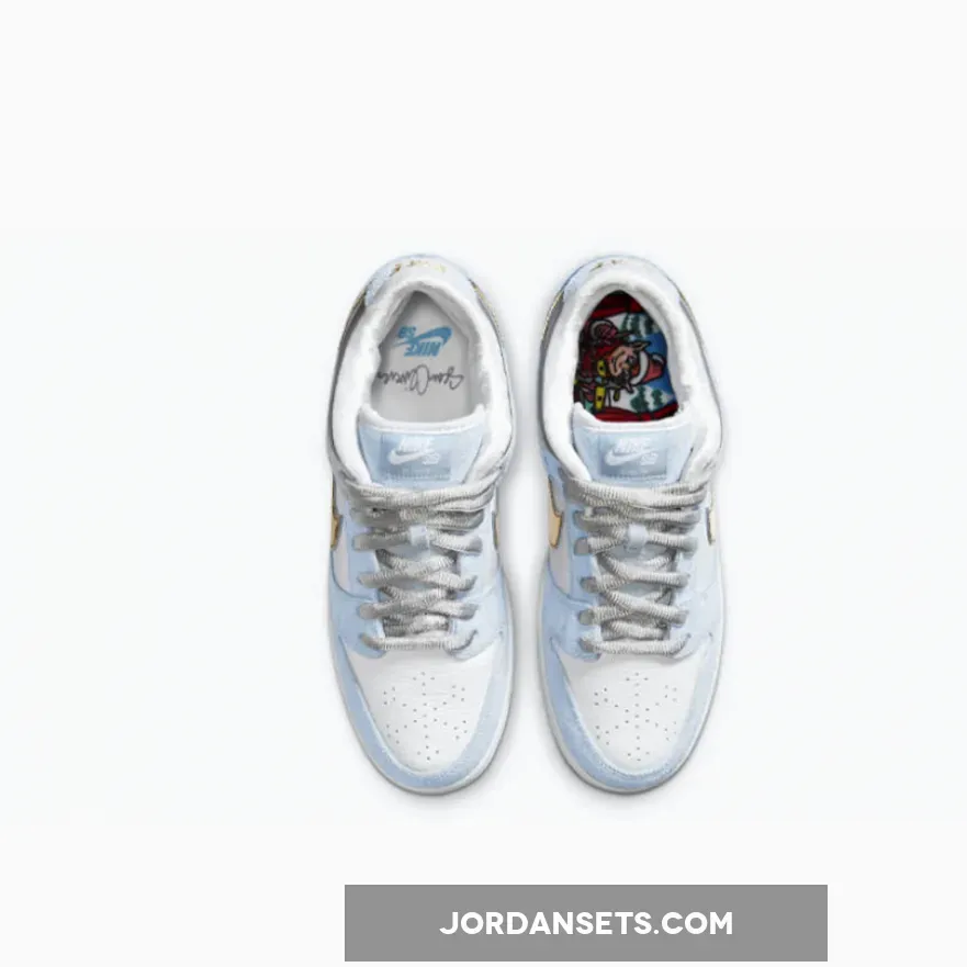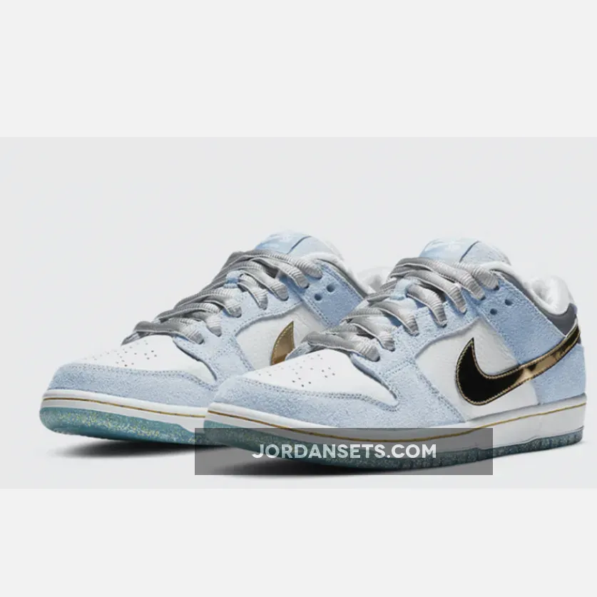 As retro colorways of the Nike Dunk silhouette make huge comebacks and never-ending high heat collaborations go into production, the Sean Cliver x Nike SB Dunk Low is the newest collaborative work of the brand with legendary skateboard artist Sean Cliver who is also the founder of StrangeLove Skateboard.The SB Dunk silhouette is currently experiencing a widespread resurgence across the globe right now, whether it’s the low cut model or high top version, it will sell out in seconds no matter what.Dropping in a new colorway of silver, white, and shades of blue, the colour blocking is subtle but very eye-pleasing. While the upper base is crafted from premium leather in a pristine white hue, baby blue suede overlays adorn the panels across the silhouette, including the heel logo. Elsewhere, shades of silver and metallic gold accentuates branding details across the shoe, prominently the signature gold Swoosh branding on its lateral and medial sides. To complete the look, Nike Skateboarding branding is present on the tongues while the insoles showcase Cliver’s signature artwork for a collaborative touch.Without a doubt, the Sean Cliver Nike SB Dunk Low Holiday Special has become a grail status for a huge number of sneakerheads and skaters. Decked with a retail price of 120 and scheduled to launch at select skate shops and via the Nike SNKRS app, watch this space for updated release info if you eagerly want these on your feet.