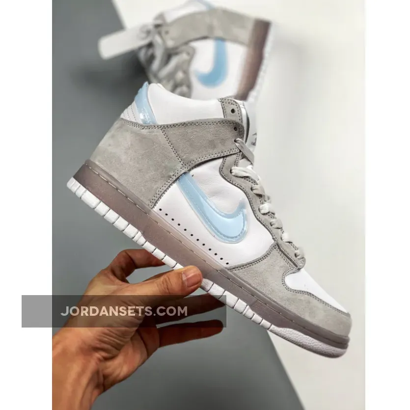 The Slam Jam x Nike Dunk High White Pure Platinum is one of two brand-new colourways of the Dunk High releasing in collaboration with the legendary Italian streetwear boutique Slam Jam. Previous Nike x Slam Jam collaborations have garnered a lot of hype, and we’re certain that nothing is set to change with these. The uppers here look set to be crafted from high-quality leathers, showcasing the traditional panelled design of the Dunk. Canvas overlays are also seen, with Nike’s signature Swoosh logo swooping in on either side for a classic look. Additional branding remains at the tongue, while the instantly-recognisable perforated toe box that became a Nike signature throughout the 1980s is present as ever. The clear-pure platinum color blocking is ultra clean, with light grey details and the gummy Swooshes creating a contemporary feel. Overall, it’s an extremely well considered color scheme. The sneaker also shows additional branding at the tongue and heel. We’re fairly certain that these Dunk Highs will be hyped upon release, so if you’re looking to add them to your rotation make sure you’re clued up.