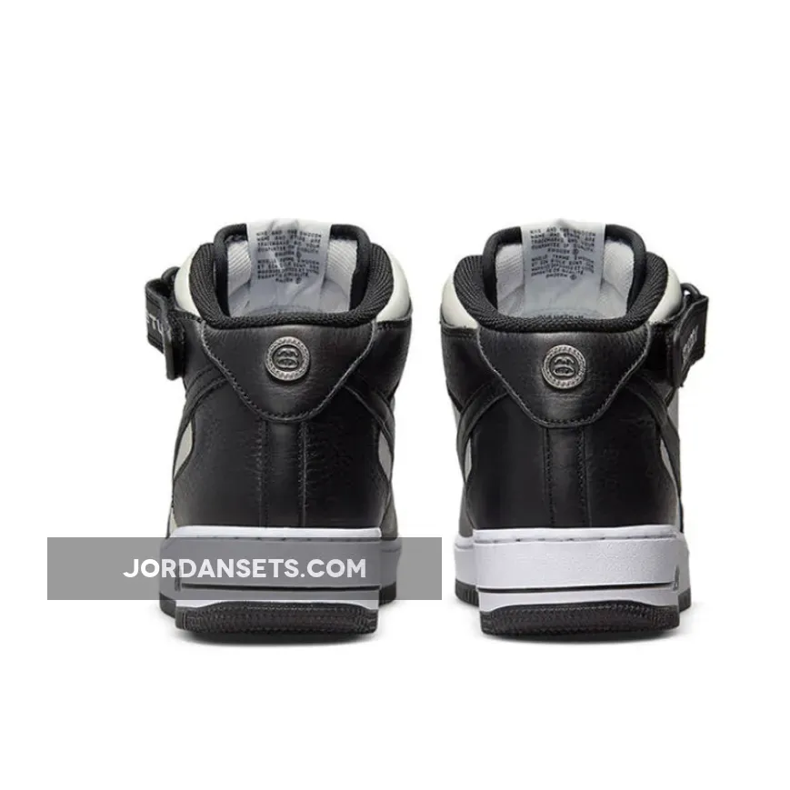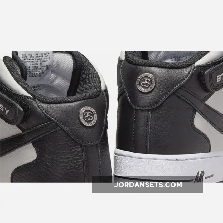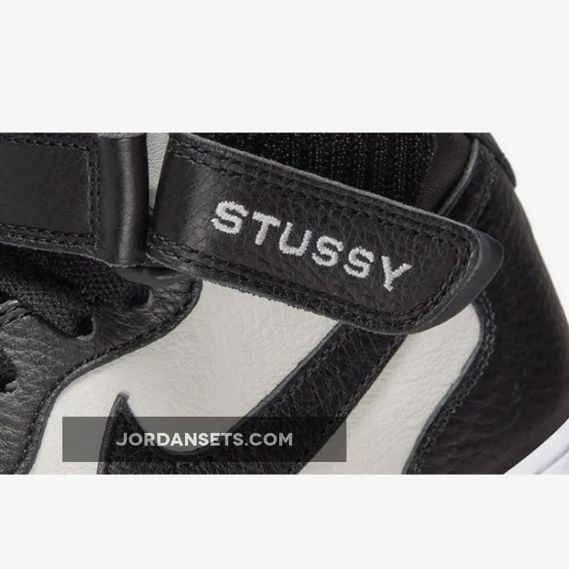 Streetwear and skateboarding fashion brand, Stüssy, has teamed up with Nike to introduce the swanky Stüssy x Nike Air Force 1 Mid Black. This all-black AF1’s upper is made from premium leather, covering everything from the base to the overlays. A touch of the exotic comes in the form of the signature profile Swooshes featuring a luxe and glossy snakeskin finish. Another unique detail is the intertwined “S” perforations on the toe box. The ankle straps with a Velcro closure have the text logo “STUSSY” embroidered in gold. Meanwhile, another intertwined pair of “S” letters appear on the heel, a silver accent decorated with jewels. The white midsoles with black “AIR” branding and black rubber outsoles complete the sneaker’s style.