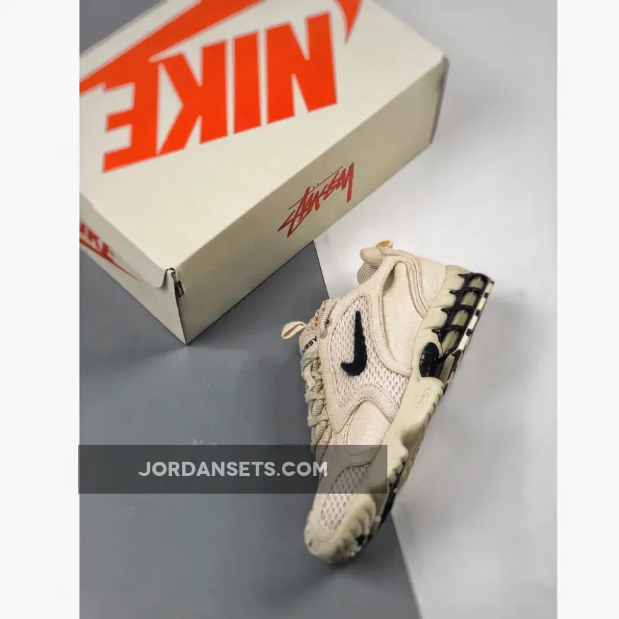 The “Fossil/Black-Fossil” take diverges from the sport origin with an upper crafted of panels marked by varying textures of rough tan canvas. Breaking up the monochromatic design of the colorway are the black Swooshes at the midfoot and toe region. Tieing the two colorways together is branding that comes in the form of oval-shaped Stüssy badges on the tongues and heels, Swooshes, printed insoles and branded touches on the outsoles. Along with lightweight Phylite rubber midsoles are distinct Zoom Air bags framed by contrasting black plastic heel cages and torsion plates. Nike Zoom technology is placed underfoot, providing cutting-edge support whether they’re worn for a quick trip out or over extended periods of time. Nike’s signature Swoosh is embellished onto both the lateral and medial sides of the shoe, while the natural-hued colourway freshens up the aesthetics.