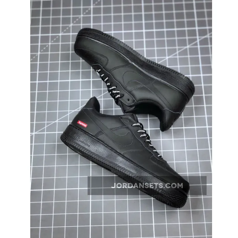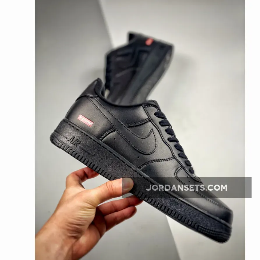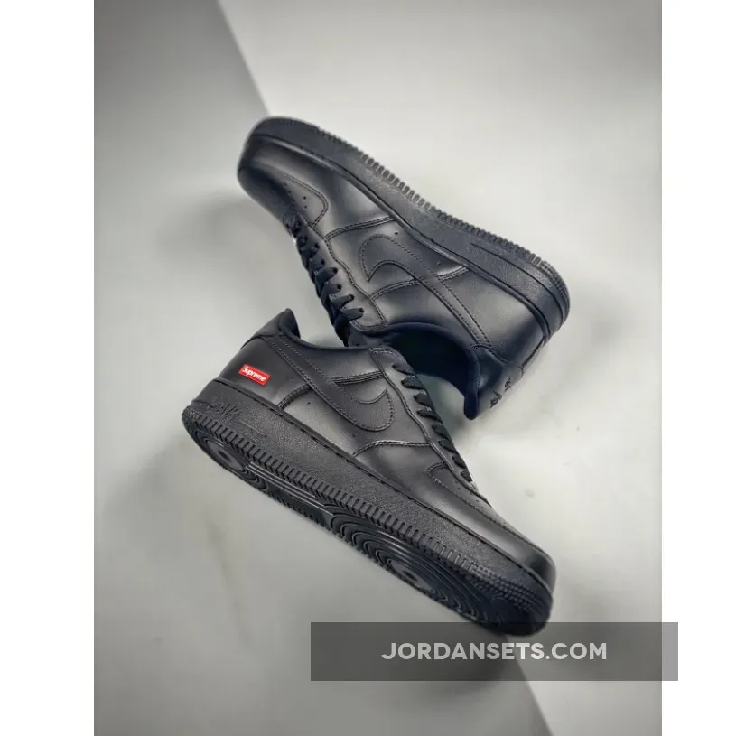 This Air Force 1 Low is comprised of an all-black leather upper with matching soles and detailing. A red Supreme Box Logo placed on the outside heel completes the design. These sneakers released in March of 2020 and retailed for $118.