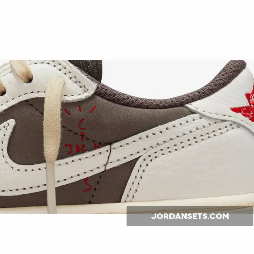 Continuing Travis Scott’s “Cactus Jack” collaboration with Nike and Jordan Brand, the long-awaited Nike x Travis Scott Air Jordan 1 Low “Reverse Mocha” looks set to see the light of day soon. Arriving in a slightly lighter-looking colour scheme than the previous iteration, the “Reverse Mocha” flips 2019’s “Dark Mocha” colourway on its head for another super-clean neutral take on the fan-favourite Air Jordan 1 Low. The reverse effect sees the shoe’s base come constructed from brown nubuck, whilst white leather overlays reach around the toecap, heels and eyestays, and a beige-coloured Swooshes and backwards lateral Swooshes provide a tonal touch. Cactus Jack markings can be spotted at the tongue and medial sides, and bold red and white Nike Air tongue tags and a red Jordan Wings motif at the heel add a pop of contrasting colour.
