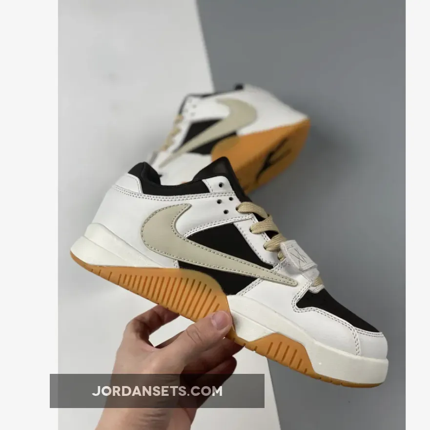 Bearing similarities to the Travis Scott x Air Jordan 1 Low OG Reverse Mocha, this new Travis Scott model features a brown mesh construction on the upper which is noted on the side panels and toes along with White and Sail on the tumbled leather overlays and the suede detailing on the heels. Additional standout details include a midfoot branded strap, red Jumpman branding on the tongues, the Cactus Jack smiley face on the heels, the now iconic reverse Swoosh in a cream color on the lateral side panel, and “Jack” branding on the gum rubber outsoles.