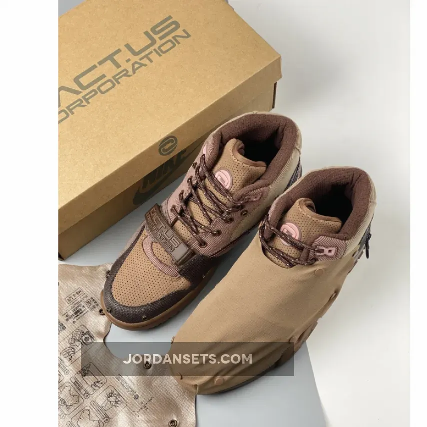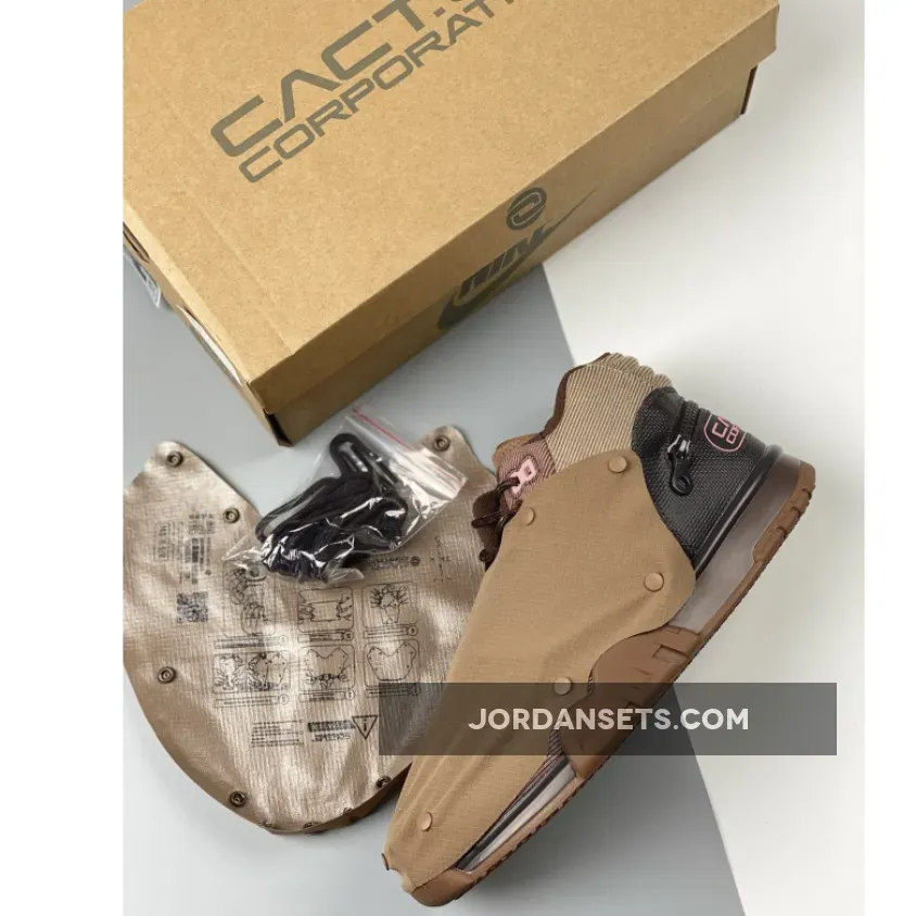 the model is defined by its canvas/corduroy-like construction, while other design elements consist of a removable protective sheath, a zipper across the heel, and CACT.US CORPORATION branding on the forefoot strap, the tongues swap out the usual Nike logos for Scott’s latest signature logo.