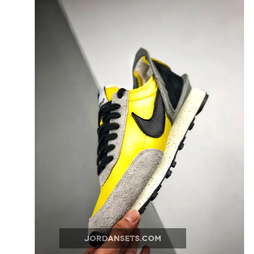 it’s set to hit the market in a new “Bright Citron” makeup. Erring towards the colorful side of the spectrum in regards to previous releases, this new Daybreak offers a compelling juxtaposition of a retro yellow nylon upper and a futuristic toothed plastic heel cage that’s dressed in a speckled grey. Grey suede overlays and a black midfoot Swoosh/heel offer further contrast, while the heel’s grey pull tab is stamped with a black UNDERCOVER “U” logo. Down below, the midsole is covered fully in speckle print and features text branding on its rear half.