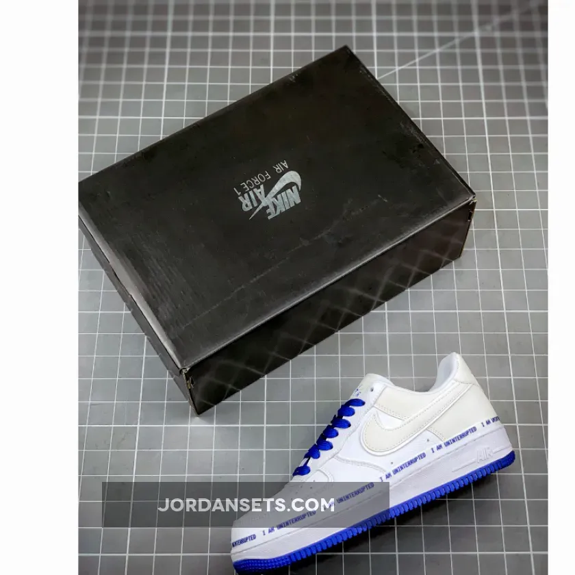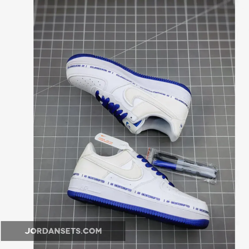 Painted in a clean ‘White’ and ‘Racer Blue’ palette, the upper of the Uninterrupted x Nike Air Force 1 MTAA White is decked out in premium leather and literally acts as a canvas. The concept behind that shoe is that sneakerheads can customise the entire upper to their heart’s content. “I Am More Than” is pencilled in around the left heel in the American basketball icon’s handwriting, allowing you to write whatever you desire to make your own one-of-a-kind shoe. Of course, a shoe that encourages you to scribble on it will come with its own tools, so you’ll find two Sharpies in the box – one in black and the other in blue. Elsewhere, you’ll find the classic perforations at the toe box and an extremely comfortable Air midsole. This is lined with a slither of blue rubber for durable traction with every step