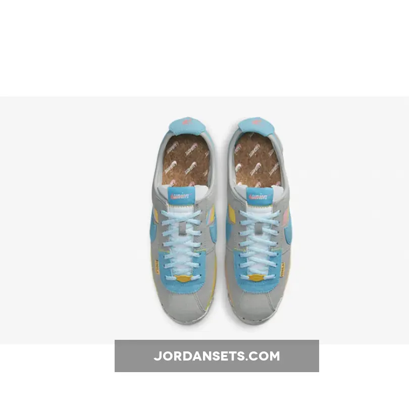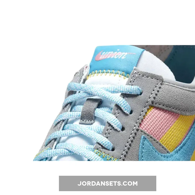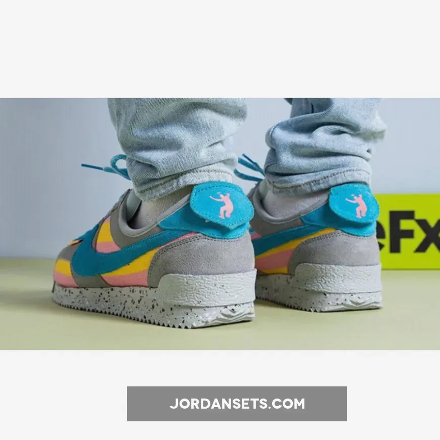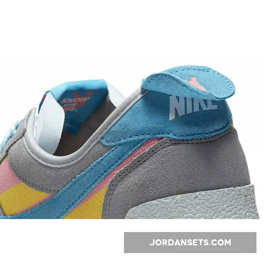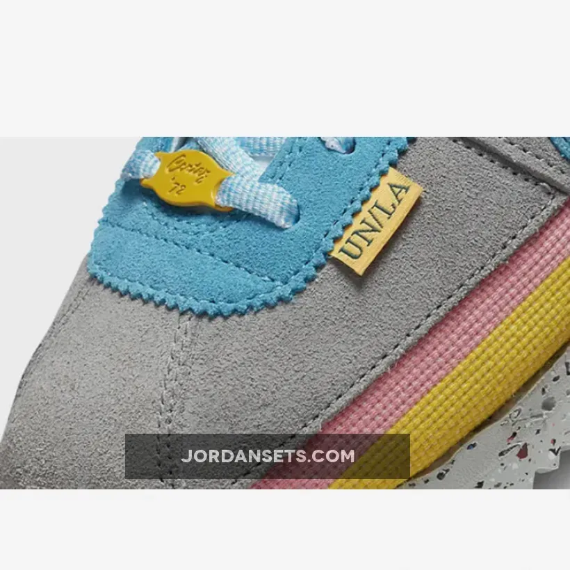 Cult clothing brand, Union LA, is collaborating with Nike to introduce a funky new collection. Check out the Union LA x Nike Cortez Grey Yellow. This running shoe is both bold and fun, showing off bright colours and experimenting with different materials. The upper begins with a canvas base with a woven finish, featuring vibrant yellow and pink stripes. Soft suede overlays in light grey wrap around the shoe. Bright blue suede profile Swooshes grace the mid-panel, matching part of the eyestay panel, the laces and the co-branded tongue label. Pops of yellow stand out on the leather lace tag and the “UN/LA” label hanging below the laces.