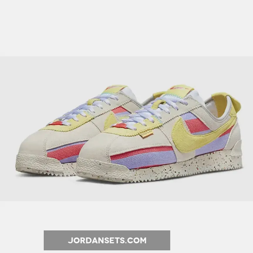 Union LA and Nike have been on quite the collaborative run for 2022, having dropped a number of takes on some of the Swoosh brand’s most famous silhouettes over the past couple of months. Now, the duo turns their attention to the Cortez, in celebration of both the model and Nike’s 50th anniversaries. Releasing alongside a couple of other collaborative colourways, the Union LA x Nike Cortez “White Yellow” has got to be up there with the best of the bunch, so let’s take a closer look at the sneaker.Following the same colour blocking pattern and construction as the rest of the pack, the “White Yellow” Union LA Cortez lets its bold colouring and branded detailing take centre stage. Neutral-hued beige suede uppers work in perfect tandem with rugged canvas side panels, which come painted with summer-ready red and purple stripes. For an extra pop of colour, a lemon-yellow Swoosh sweeps across the side of the shoes, with panels of yellow suede also appearing at the eyestays and heel panels. Union branding can be spotted in the form of a yellow tab at the forefoot, and the Union Frontman-branded heel panel lifts to reveal Nike branding underneath. A pair of Crater Foam midsoles sit underfoot, bringing the perfect finishing touch to the utilitarian-style take on the classic silhouette.