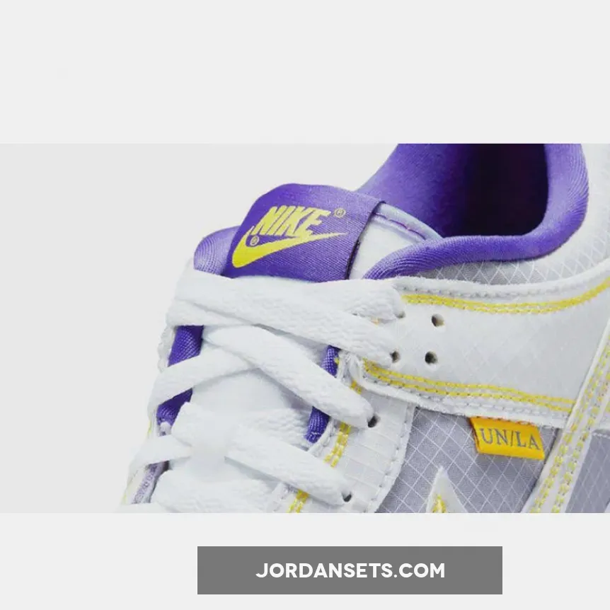 Born out of a collaboration between a Los Angeles-based streetwear shop and a heritage shoe brand, you can expect nothing less than supremely stylish design from the Union LA x Nike Dunk Low Purple Yellow. Veering away from the traditional all-leather look, Union LA Founder Chris Gibbs and his team dressed this pair with a resilient ripstop and nylon combination for its base and overlays. Adding to the seemingly Los Angeles Lakers-inspired palette is the zesty orange “UN/LA” tag. Further back, you’ll find LA Union’s Frontman logo at the lateral heel. There’s no doubt that these vibrant shoes will bring life to your looks.