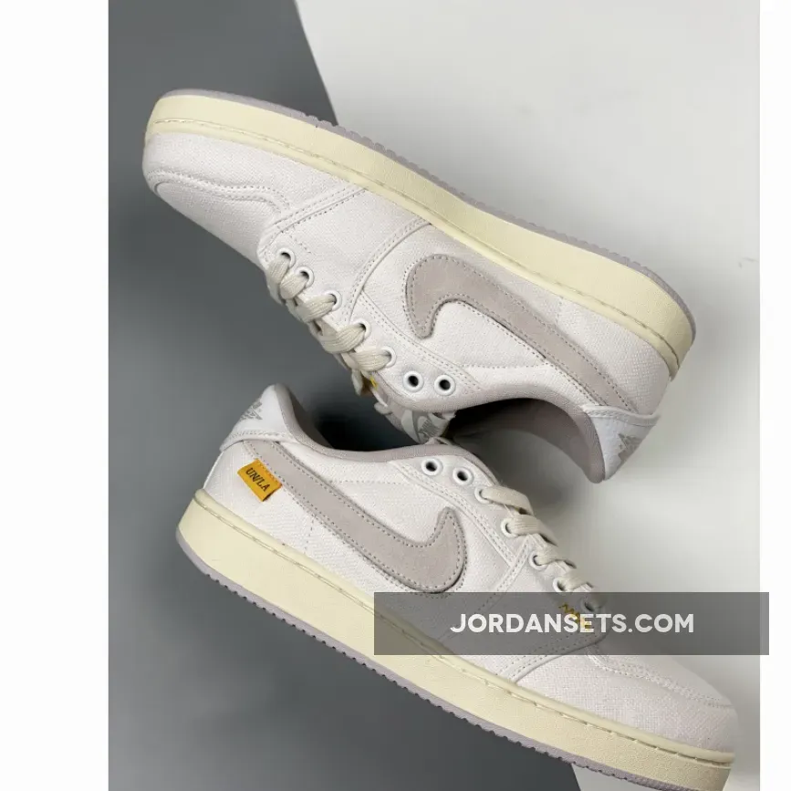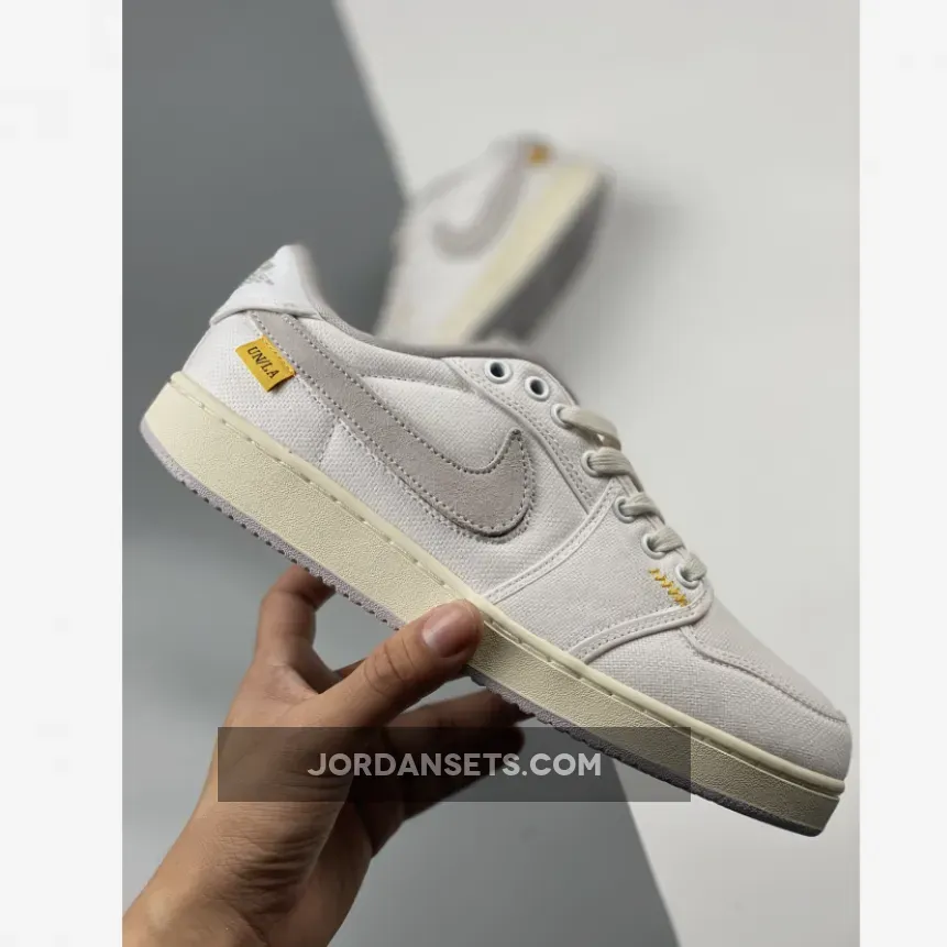 Make way for another collaborative sneaker coming from the famed Los Angeles-based men’s boutique and Jumpman crew. Say hello to the Union LA x Air Jordan 1 KO Low White Cream. This minimalistic sneaker boasts a monochromatic design that features a sturdy canvas upper with a bright white base and grey overlays. The leather Nike Swoosh that shoots across the lateral and medial sides is also kept minimal with its pale grey shade. Meanwhile, a stark contrast comes through the sunny hits of “University Gold” at the tongue and UN/LA tags.
