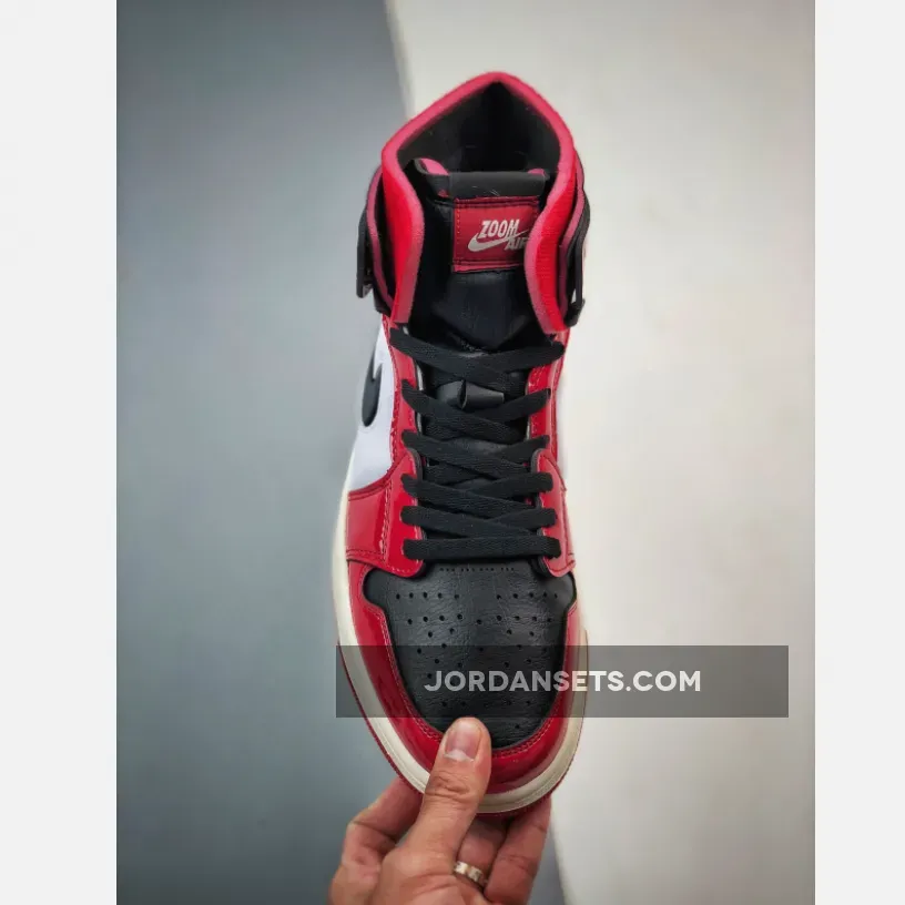 The Air Jordan 1 Zoom CMFT Patent Chicago is made for days when you want to put your best foot forward without putting in too much effort. This covetable pair’s stylish design will do all the work for you. It presents an eye-catching colour blocking inspired by the Chicago Bulls. White tumbled leather adorns the side panels while contrasting black is seen at the perforated toe, heel, collar, and Swooshes.